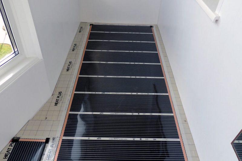 Настил из инфракрасной пленки нельзя располагать под растворы клея, поэтому здесь можно использовать ковролин, ламинат и линолеум.